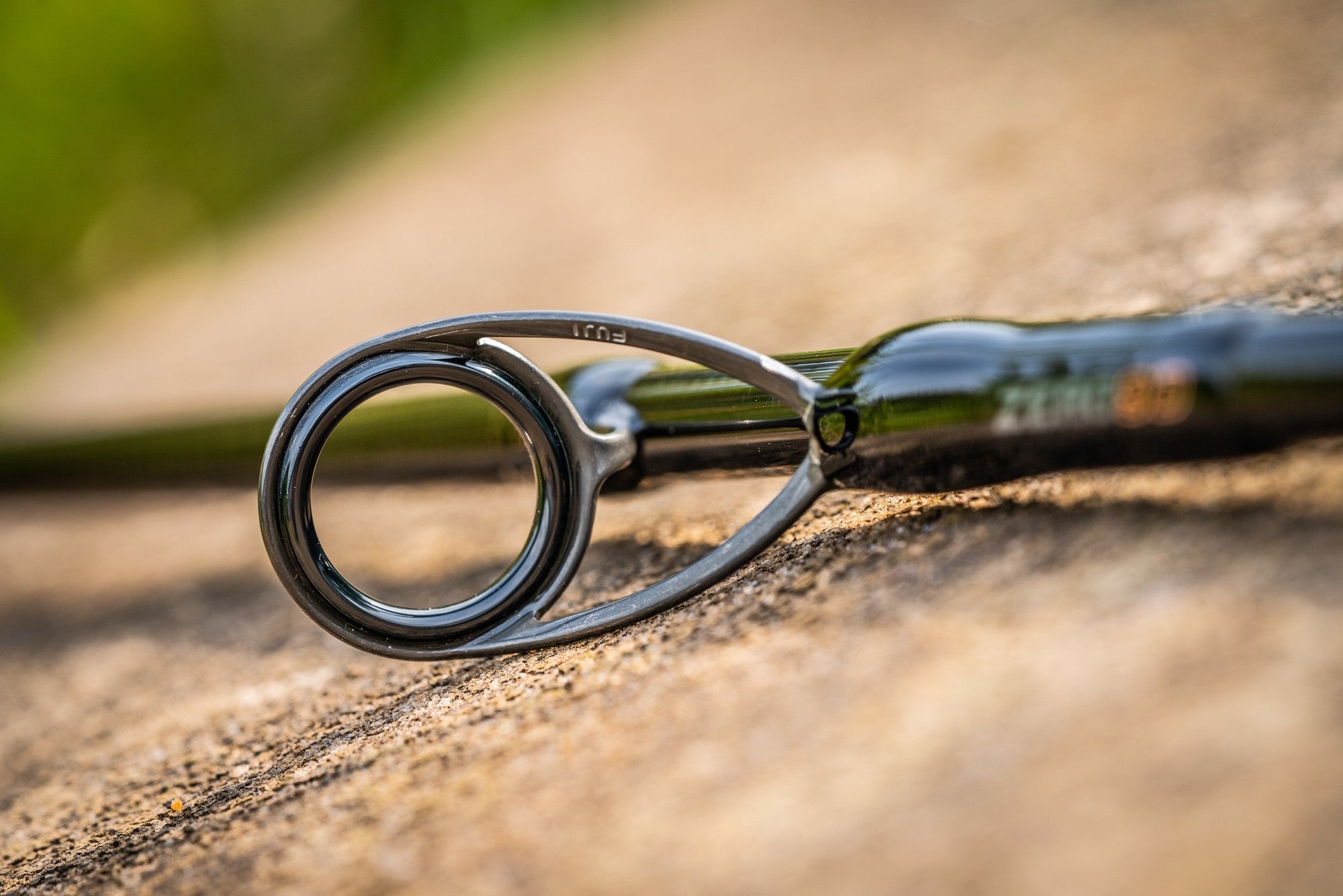 Premium guides — single-leg stainless frames with durable ceramic rings for smooth line flow and minimal friction.