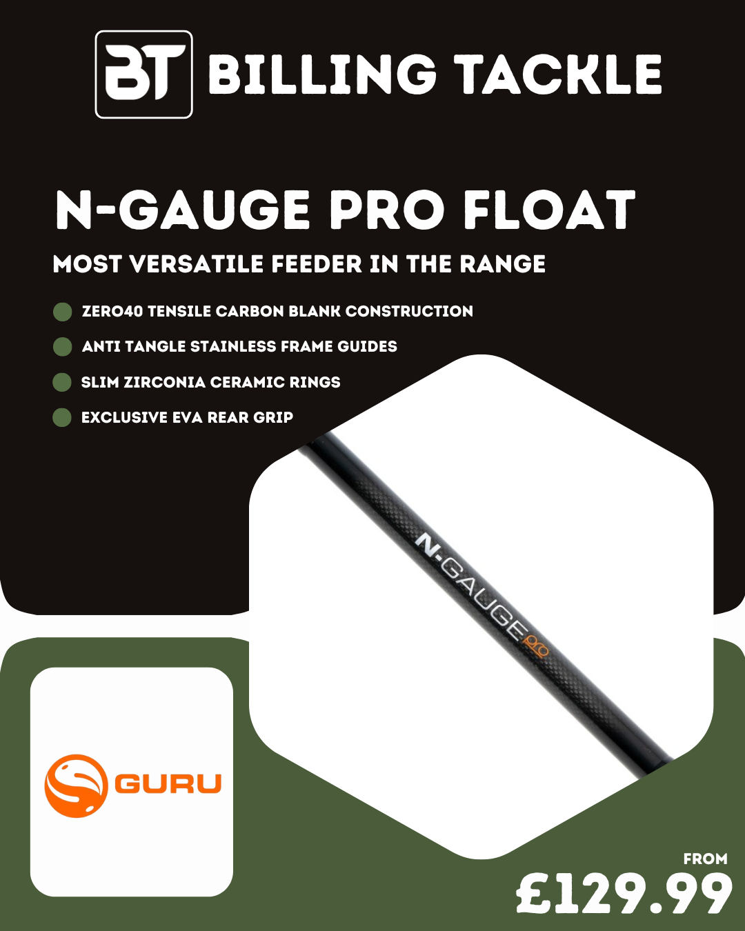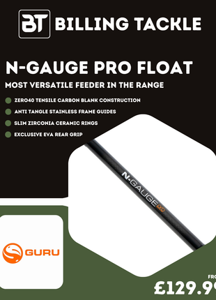 The Guru N-Gauge Pro Float Rods are beautifully balanced, expertly finished, and built to perform across a wide range of float fishing situations. They combine finesse with enough power to handle modern commercial carp fishing, while still offering the delicacy needed for silverfish and lighter presentations.